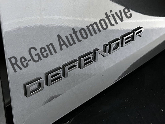 NEW DEFENDER REAR DOOR TAILGATE LETTERS / BADGES MATTE BLACK ABS SELF ADHESIVE