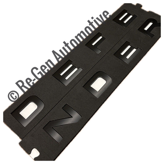 NEW DEFENDER REAR DOOR TAILGATE LETTERS / BADGES GLOSS BLACK ABS SELF ADHESIVE